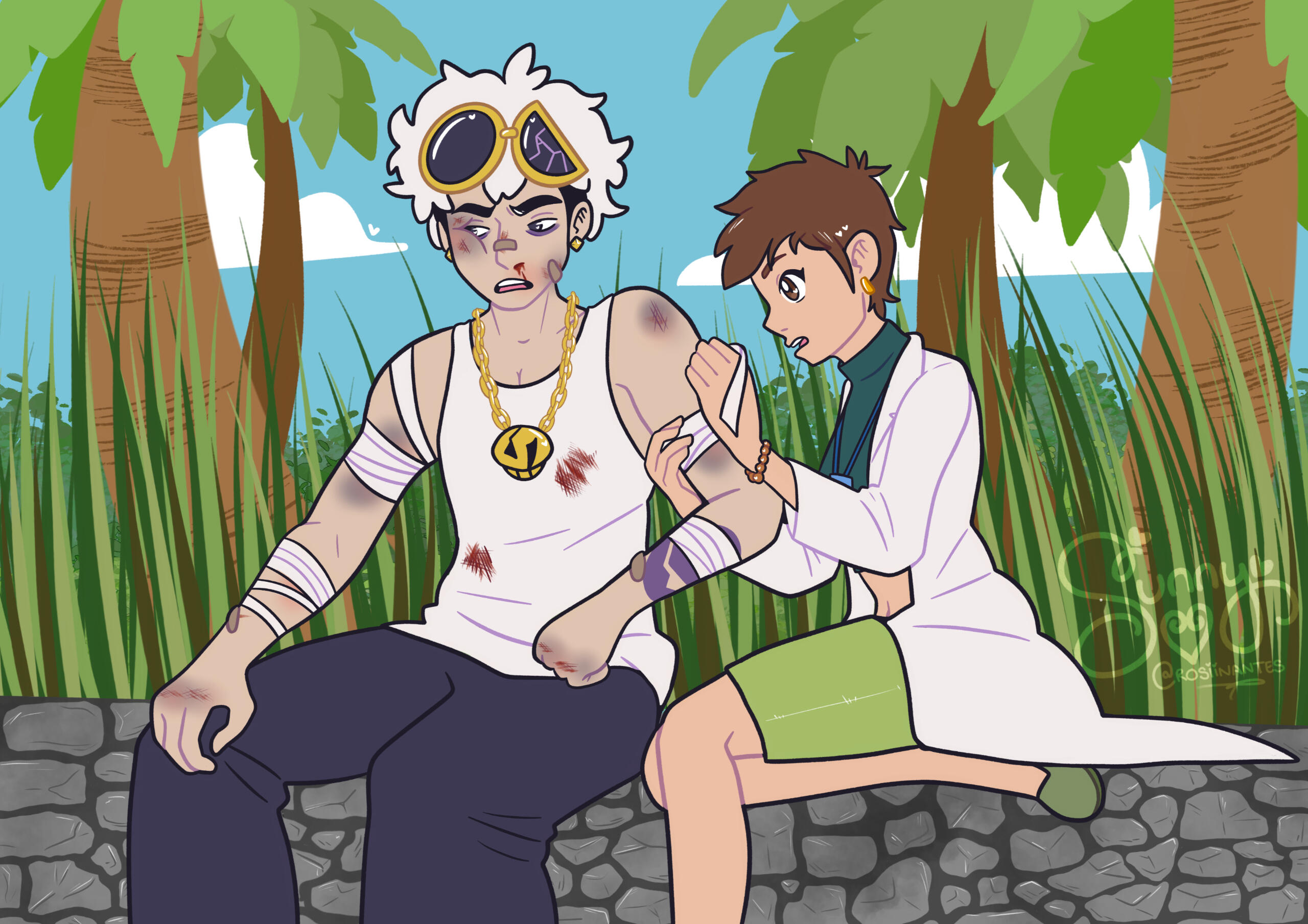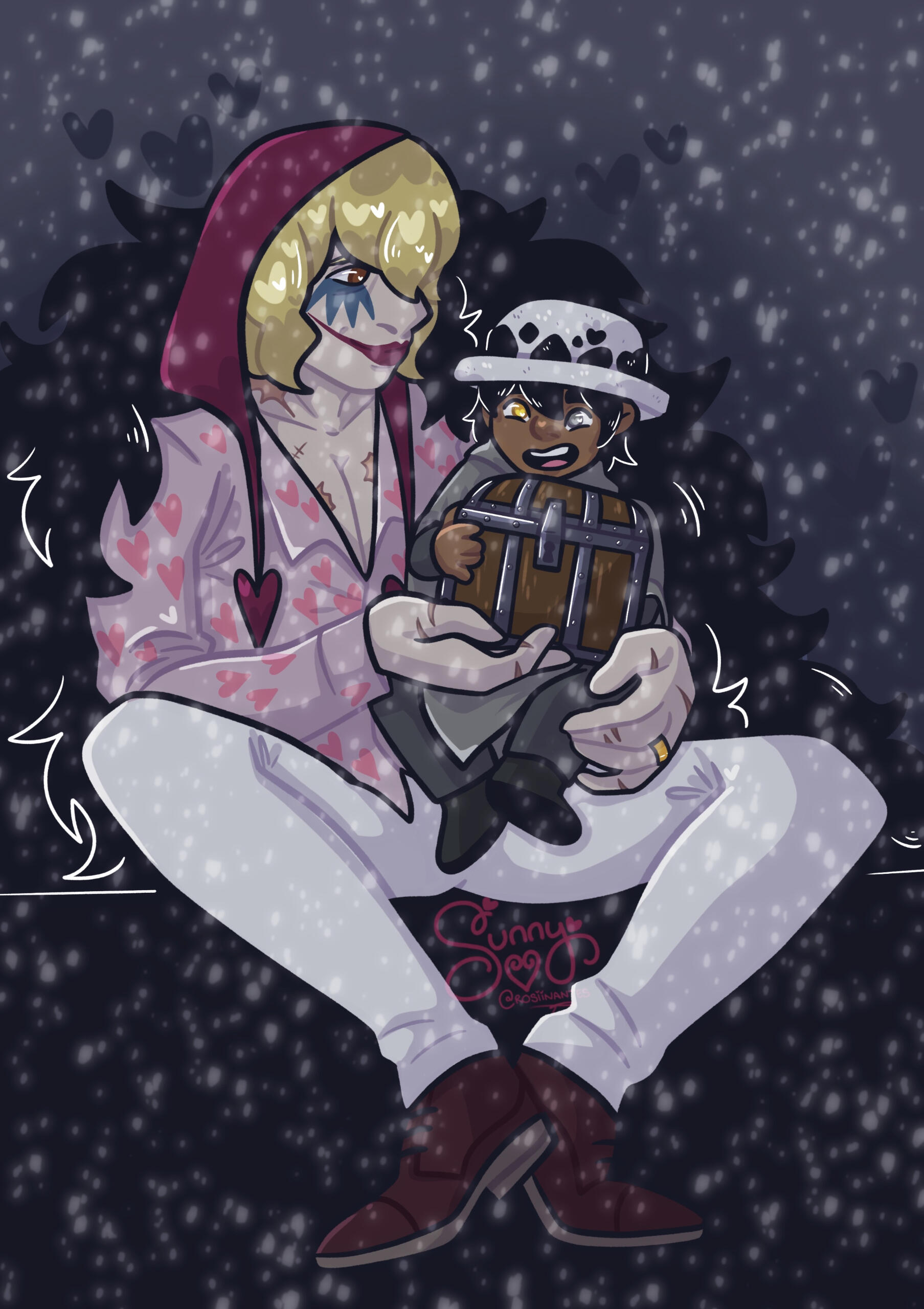 Sunny & Rosinante are childhood best friends that grew up together & formed an inseparable bond.♥They met when Sengoku brought Rosinante to the Marine HQ Base as a child and adopted him, Rosinante spent a lot of time as a child crying or quietly avoiding the other kids until Sunny befriended him.Rosinante and Sunny were assigned to infiltrate the Donquixote Family and provide the Marine's intel on the criminal organization. In doing so they were assigned to falsify a marriage as part of their undercover personas. Both of them had been harboring romantic feelings for their best friend until this moment, they confessed to each other because of the mission and got actually married before they left Marine HQ.Eventually, Sunny leaves with Rosinante in order to help find a way to get Law treatment for his disease. Sunny's main focus in these moments is comforting Law rather than having outbursts at the hospital for their treatment of him like Rosinante. Sunny tries very very hard to give Law back some of the childhood that he had to miss out on when he had to grow up too quickly.On Minion Island, With Law in hiding, and Rosi setting off to find the ope ope no mi, Sunny is tasked with using their devil fruit to create decoys of the family to distract the marines & dq family. They don't know that Rosi has been killed until they feel the burning of their locket, opening it to find that Rosinante's vivre card has been turned to ash. Panic sets in and they try to get to him and Law, but the birdcage makes it impossible to get to Rosinante.Hearing that a boy has been taken in by the Marines makes them breath easier, until they find that it's not Law. They use a decoy and fake their own death as well, going into hiding for 13 years.Contemporary to One Piece Canon, Sunny joins the Heart Pirates after Dressrosa, meeting Law again for the first time in 13 years in Zou and joining the crew.♥Tropes / Tags —•Best Friends to Lovers