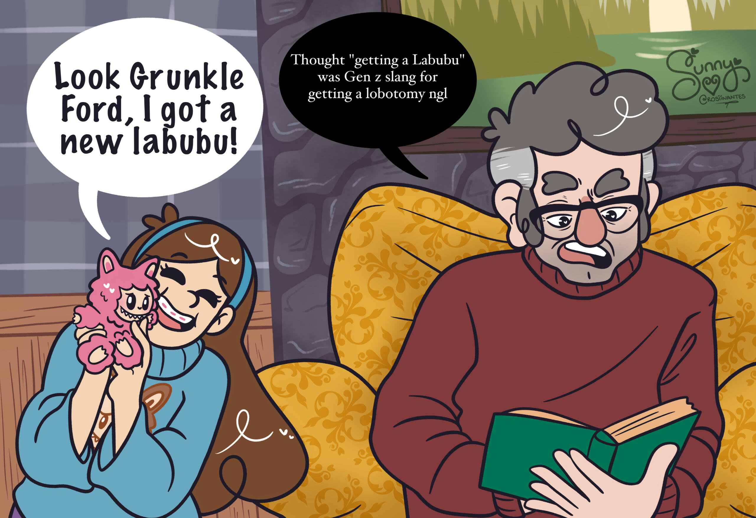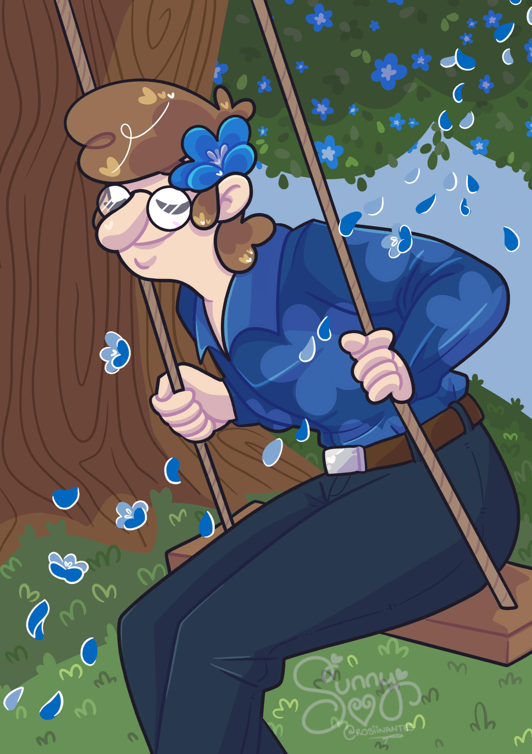Sharing OK (He's an ex lol)Sunny is a selkie, who lives in Gravity Falls under human disguise. They were found at the beach in the late 1960s by a polyamorous group of hippies, who raised them under the name Sunshine, relating to their sunny disposition as a baby.They grew up very self sufficient and living off the land. They make all of their own clothes, forage in the woods, and continue to live off the land.Sunny & Stan got married in the late 80s, around the time that Stan started the Mystery Shack as a business, and divorced a few years later, amicably. Neither Stan or Sunny tell anyone why they got divorced but anytime anyone asks they give a different reason each time (because they think it's funny). It's been so many years now, they don't even remember the real reason.Contemporary with canon, Sunny runs a very small tailoring shop in the town of Gravity Falls, where most of what they do is repair flannel shirts.Stan and Sunny are still very good friends and drinking buddies. Sunny takes as much care of Stan (& company, when applicable) as they can, they like to bring over prepped food so that Stan has home cooked meals stored in the freezer so they know he is eating well.Sunny currently lives in a converted van in the woods, they like to be mobile and be able to travel around, though they can be found in Gravity Falls more often than not. As a selkie, they need consistent trips to the beach to feel connected to their real home (the ocean) and to make sure they don't loose who they are.Sunny gets along pretty good with the Twins, but Mabel especially, as she reminds them a lot of themself as a kid & she has a lot of the traits of Stan that drew them to him in the first place. Sunny likes to spend afternoons with Mabel at the shack if she's not busy, doing crafts or art projects together.